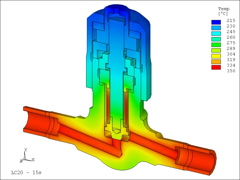 Calculation loadcases for the static strength control were chosen in accordance with the requirements of the document OTT-87 as well as in accordance with the assumable operating condition of the valve in the location of its installation.